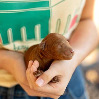 Our final litter of poodles for this season we are calling "oodles of poodles" arrived on January 2, 2026! The proud parents are Ruby and Copper. The litter consists of five boys and two girls. These puppies will be ready to meet their new families starting on February 27. They range in color from dark red to apricot and will grow to weigh approximately 55 lbs. (This is our last litter for a few months! No one else is currently pregnant! So if you're wanting a "spring" puppy, this is probably your litter :-D)